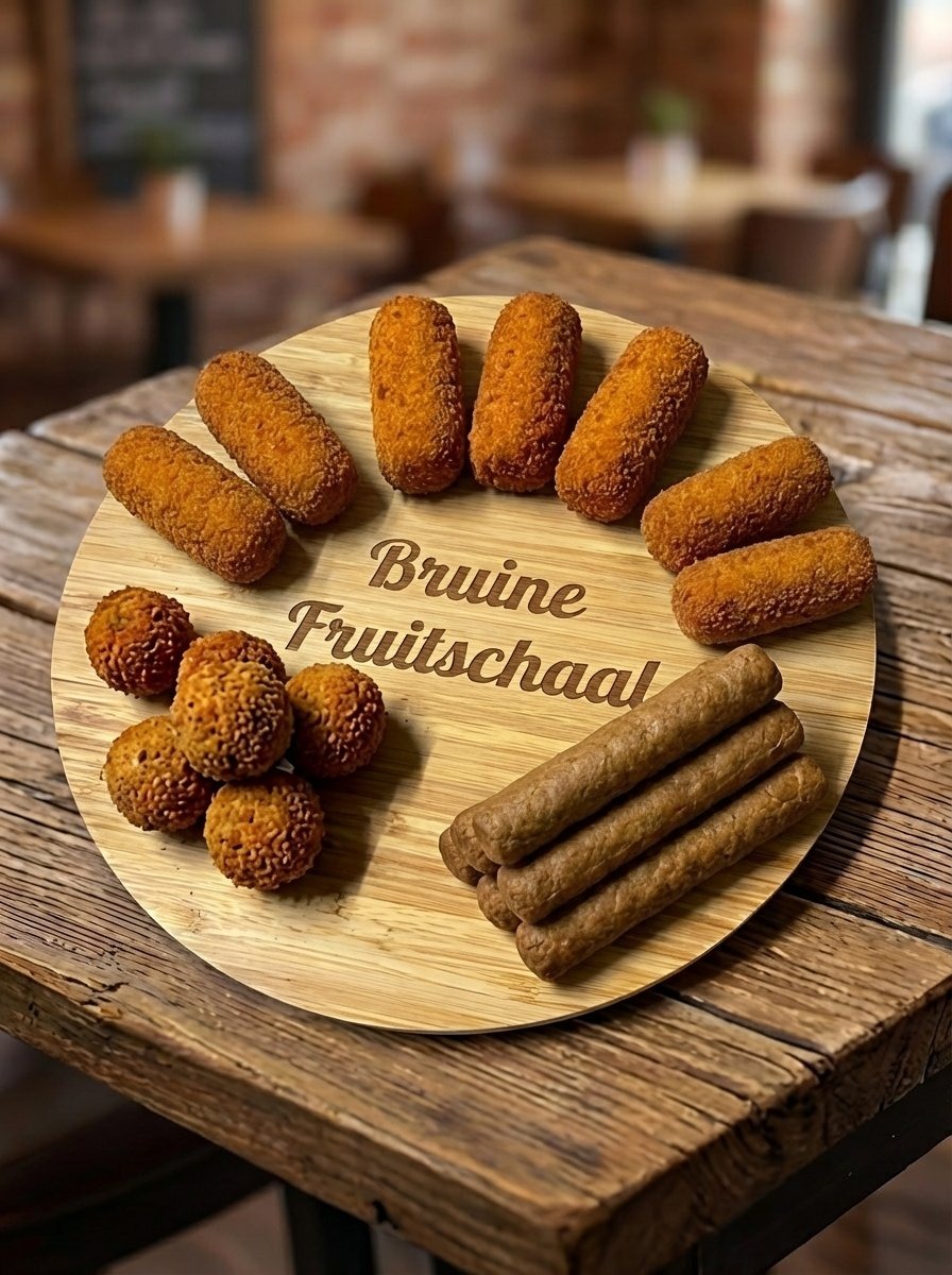 “Fruitschaal” is hier natuurlijk een dikke knipoog… want wij weten allemaal dat deze schaal keihard bedoeld is voor de echte snacks, rechtstreekt uit de frituur.