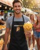 Naast de humor is het schort natuurlijk ook gewoon praktisch: je houdt je kleding schoon terwijl je de ene na de andere portie patat, snacks en sausjes klaarmaakt.