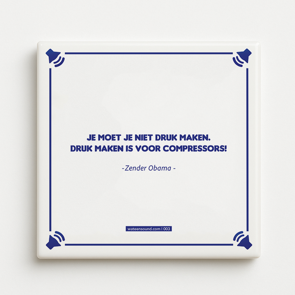 Derde enige echte tegel “JE MOET JE NIET DRUK MAKEN” – Omdat compressors al genoeg druk maken voor ons allemaal.
